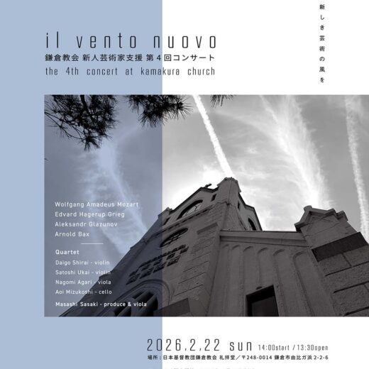 2/22(日)il vento nuovo 第4回新人芸術家支援コンサート開催のお知らせ...